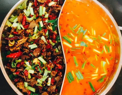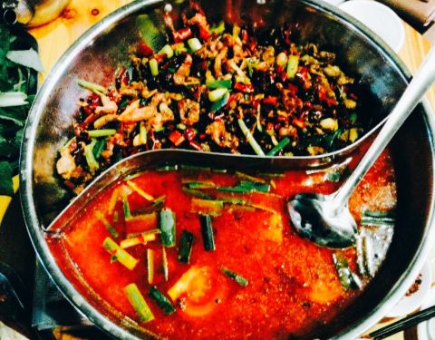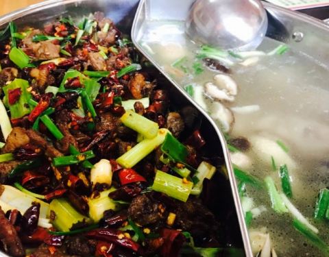 在肇兴玩了一天,晚上还是想吃的好的犒劳自己,于是网友攻略搜到这家店,店很小,如果不注意很容易错过,离表演广场很近,导航能定位准确。看很多盆友都是说他家酸汤鱼不错,加之自己又是牛肉爱好者,于是乎点了个酸汤鱼和麻辣牛排的拼锅,尽管只有一个锅,但是锅底还是分开收费的。讲真,酸汤鱼还是不错的,原本想点江团,不过老板说我一个人容易吃不了,于是乎点了推荐的稻田鱼,其实酸汤的味道是很棒的,只是稻田鱼的小刺实在不算少。至于麻辣牛排,也是味道很舒服,但是牛排实在太难嚼,也许是因为时间短,没来得及高压锅煮一下,以至于最后剩了很多牛肉嚼不烂。整体来说,味道没得说,只是细节还需要改良一下。