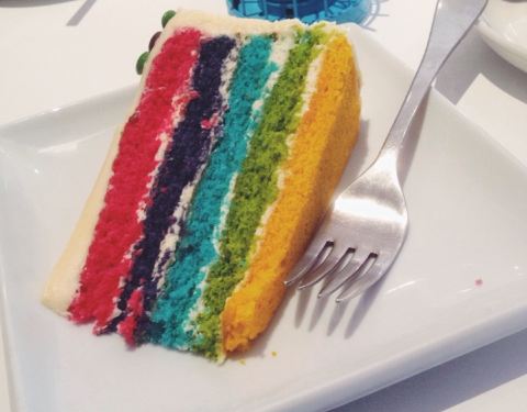 Good rainbow cake. Service was OK.