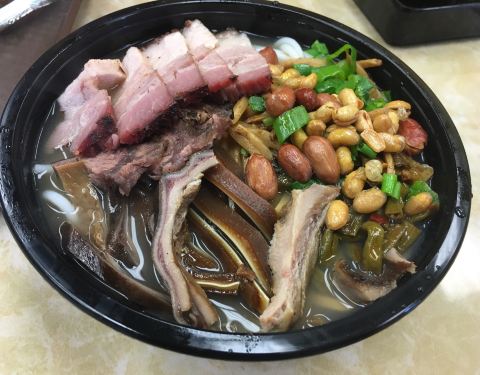 前台(应该是老板)总是热情地招呼客人:“今天想吃什么?”在九龙湾烧腊(Kowloon Bay BBQ House),我们奔着桂林米粉而来,用料很足。花生米、炸黄豆松脆,酸豆角很入味。之后买了卤猪手、酱猪耳,烧腊的味道一般。