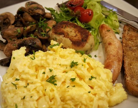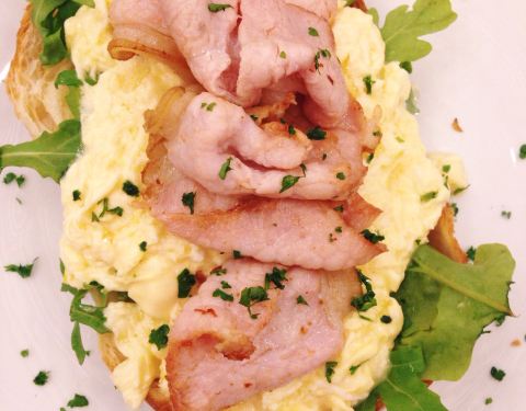 Try the croissant topped with bacon and fluffy scrambled eggs. Scrumptious! Good coffee too.