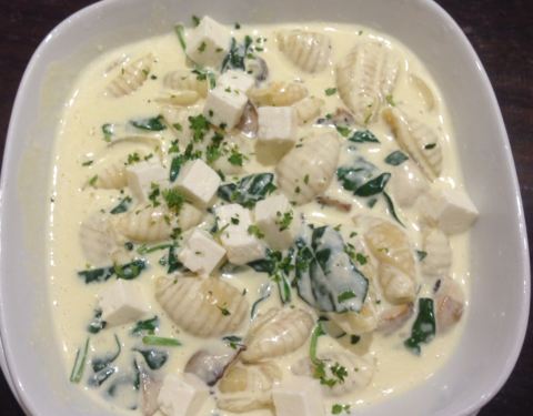 Skip the mushroom spinach carbonara, taste really bland though I added lots of salt, pepper and tobacco. I had to order extra bacon (10) in order to finish this boring Vegan dish.