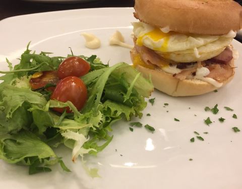 Having the usual bagel, bacon and egg.. The bac...