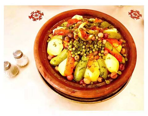 在这家餐厅品尝到最具当地特色的塔吉锅:Tagine。食物必须烧到酥烂,摩洛哥当地人喜欢加坚果和干果来为肉类添加风味。再配一些蔬菜,味道很好。