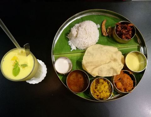 Banana leaf,fried chicken leg,mango lassi & fresh cow milk are good!