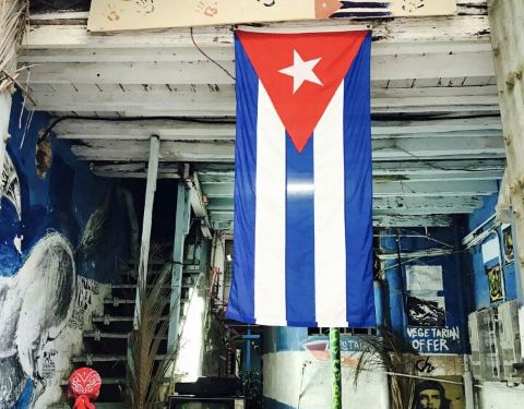 这是哈瓦那的一家私家菜馆,沿着san ignacio大街一路往北,看到一家墙面涂满涂鸦,门口挂着古巴国旗的便到了,这是我在哈瓦那吃到的味道最好,而且性价比很高的一餐,有一种到别人家做客的感觉,主人的厨艺真的很不错,非常的好吃,主人也很热情,绝对有种宾至如归的感觉。
