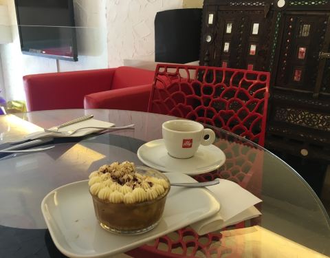 Hidden gem located off Hamra street. Tiny yet charming dessert place where u can indulge your sweet tooth in all kinds of mouthwatering creative speciality cakes. Banoffee cake was delicious!