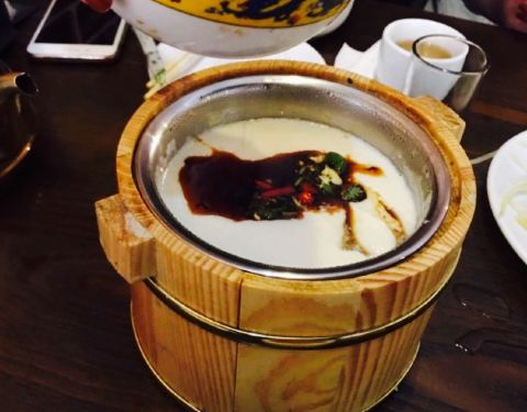 离开阿尔山的前一天晚上,同行小伙伴都觉得羊肉没吃过瘾,就回到市里寻找烧烤店,这家也是朋友推介,抱着半信半疑的心情过来,结果发现很合胃口啊,性价比也可以,老板娘实诚也热心。点了一大堆肉,吃的都不腻,羊排,羊肉串和牛板筋印象深刻,烤奶皮子端上来就一股浓烈的奶香,烤蘑菇酥脆,木盒豆腐有点稀,不过蘸料很香,辣椒够辣,另外发现烧烤跟酸奶绝配呀,推荐试试。