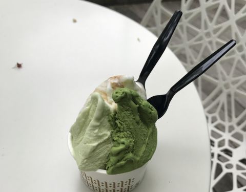 正午的太阳很烈,经过这片商业街,买了一杯咖啡,还是寻思着需要一点冰饮来消暑。 而这家店门口的一只小奶牛吸引了我,看起来白白的,很纯净,跟店名一样的纯粹。 店里有卖一些农产品还有牛奶制品,以及他们家边自己产的冰淇淋。 【三色冰淇淋】600日元 冰淇淋还是用蛋卷装,一球一球的重叠,这样比较好看。放在纸杯里真的怎么都好看不起来呀。 他们家的冰淇淋,就真的是造型很丑,要不是冰淇淋的颜色看起来还多小清新的,真的就毁了。 一只小小的纸杯,然后把我选的三款口味的冰淇淋分别舀进去,毫无美感,堆得跟一座小山似的。 我选了三个味道,纯白的牛奶冰淇淋、浅绿的芥末冰淇淋、深绿的抹茶冰淇淋。 有种由浅到浓的递进感,颜色是真的很好看。 味道嘛,我有些忘了,好像牛奶味很足,芥末的味道很淡,应该所有人都能接受的那种浓度,抹茶味道倒是浓郁,日本的抹茶出品重来没让我失望过。 店铺不大,卖的东西都比较贵,真的是一分钱一分货吧,良心出品,肯定是好东西。价格贵也是有道理的。