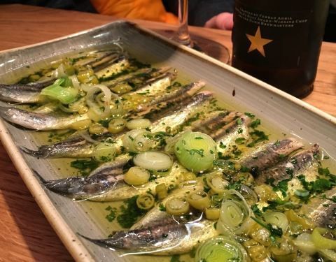 Marinated anchovies with leeks were delicious. Warm and welcoming environment, great food and inventive cocktails!