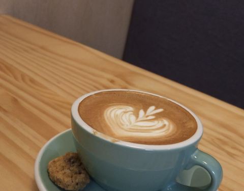 咖啡馆设置在一个公共办公空间里面,中午到下午很多人就坐着边喝咖啡,边在笔记本上工作。和我想象中的咖啡小馆不太一样,如果我提前知道它的空间是这种模式的,可能就不会去啦。 澳白 flat white最近喝好多澳白...