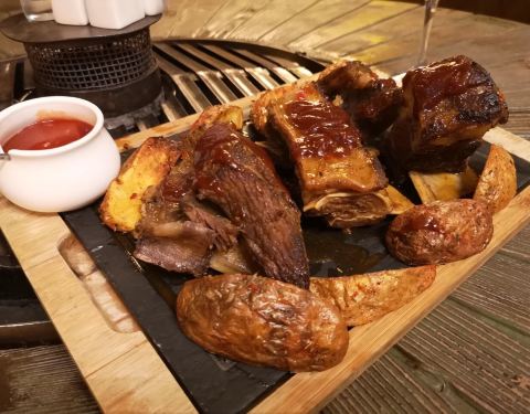 环境很好,我们的服务员也很友善,吃的东西还可以,就是烤牛肉有点太老了,饮料和面包都好吃的,吃完...