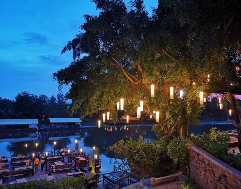 这是北碧桂河风情区的一家露天餐厅,沿着桂河而设,经营着传统的泰式美食。坐在岸边吹着河风,品尝着美食,偶尔看见眼前萤火虫飞过,真的太休闲了,回归田园牧歌的生活真是幸福。