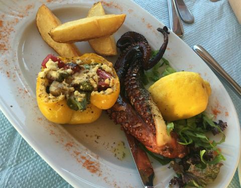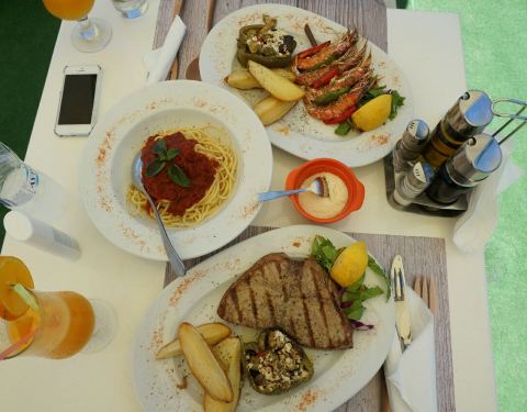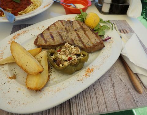 这是扎金索斯海边的一处半露天的烧烤餐厅,在扎金索斯非常的有名。这里的海鲜烧烤,还有牛排,绝对是要来品尝的。虽然收治的方法非常的原始,但是食材新鲜,配料恰当味道,相当的不错,满口留香,真的是非常的好吃。