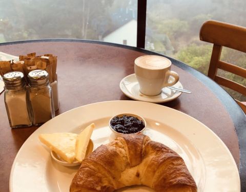 罗拉主街上的Cafe,一整面玻璃窗面对着山谷,外的风景很养眼,当天正好有雾气缭绕,恍若仙境,羊角面包很大只,咖啡☕️不错,早午餐的好地方!