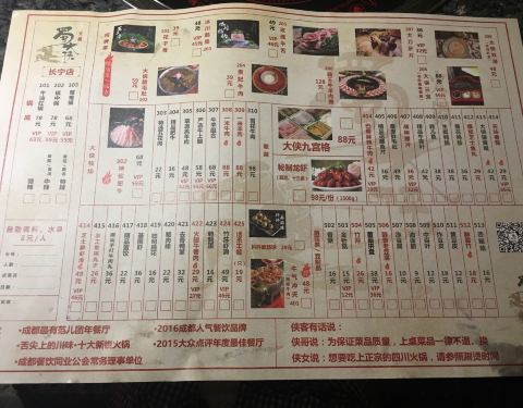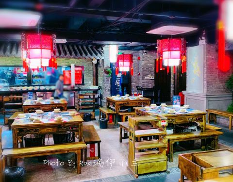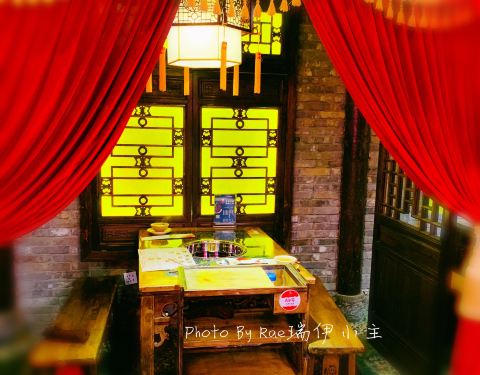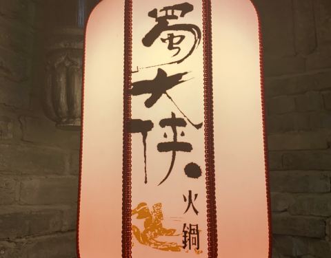 环境:蜀大侠里进门就见侠客行,望着店内红灯笼、长条凳清水砖有点意思。耳边回荡着《沧海一声笑》的背景音乐非常应景就马上联想到江湖。什么是江湖?人即是江湖。什么是江湖?恩怨即是江湖。江湖是美丽的,在深夜的街头独自挥舞着刻着自己名字的剑,像风一样潇洒;江湖是无奈的,看着自己的师友至爱喋血黄沙,为报仇也只能十年面壁。这就是江湖!而行侠仗义快意恩仇的侠客则是江湖中最为绚烂的一笔重彩! 服务:一声大侠里面请,让我进入了一个武侠世界。始终面带微笑的服务生带我们入座后拿来菜单,并为我们倒上茶水指点我们把随身衣物放进桌子底下的藤筐里。勾画了店里的招牌菜下单后涮菜就陆陆续续上桌了,服务生会及时撤去空碗碟,出门也会送客服务可以的。 |奔驰锅^所谓奔驰锅就是可以选择三种口味锅底,外形像奔驰的标志,不过这里的锅把手是两个霸气的龙头,三种口味的锅底选择性更多。我们选的是微辣、骨头、菌菇汤底。 |自助调料^非常喜欢这里的自助调料台,各类小菜、蔬果可以装盆,盐水花生、凉拌海带、小藕尖开胃菜就让人吃的半饱。更别说黄瓜、西瓜、沙糖桔和柚子这些时令水果啦。其实我冲着黄桃块来的,可惜当天没有,这里水果轮流换,把我最想吃的换没了,真是遗憾呀! |蘸料^店家非常贴心的在自助调料台贴出了川味火锅经典推荐搭配酱料表,懒人族可以按图索骥按需自行调制了。 |霸王牛羊肉圈^几乎每桌必点菜,一面是羊肉一面是牛肉,这红红的肉圈围着奔驰锅看上去就很爽,在滚滚的火锅中涮烫后蘸上料,今天让我做一回侠客,大块吃肉,大口喝汤,川味火锅就是够味。 |冰川鹅肠^这道菜上桌面时仙气袅袅的,整个用真冰凿成的透明冰碗里有粉色的鹅肠,在微辣的红油锅底涮后更是脆嫩。 |大侠脆毛肚^每次必点毛肚,这大侠毛肚是一大片,在锅里涮七上八下蘸上料真是脆嫩鲜美。 |蔬菜拼盘^一个蔬菜拼盘里有茼蒿、香菜和大白菜等,肉食吃多了涮点绿叶菜解腻是非常必要的。 |自助冰激凌^可以自己打的自助冰激凌无疑是个亮点,闺蜜为我打的多层冰激凌蛋筒层次多堆的好高,冰爽爽滑解辣,吃的好过瘾。 总体来说蜀大侠里菜式和服务都很不错,不过服务生把我们安排在临近安全门的座位上,这扇门一直有人进出,寒冷的穿堂风直往我们身上吹,叫服务生关了几次还是不行,我们只能自己不停的去关门,吃顿火锅我们离座几次容易吗?!最后感谢亲爱的闺蜜,让我们把不愉快和霉运都涮掉,幸福好运转过来!