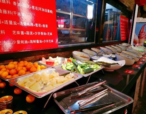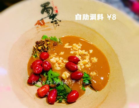 |蘸料^店家非常贴心的在自助调料台贴出了川味火锅经典推荐搭配酱料表,懒人族可以按图索骥按需自...
