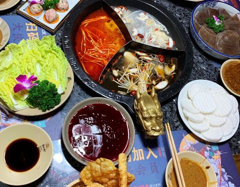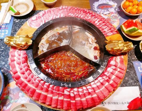 服务一般,环境还可以,人气足,但菜品的口感好坏各一半。个人感觉这家店的锅底挺好的,有一种的、鸳鸯的还有奔驰锅底,很随心,我选了奔驰锅底,有菌汤、骨汤和红汤三格,每一种口感都很好味。 活杀牛蛙肉质很嫩,很新鲜,涮在红汤后口感辣的好刺激又不失鲜美的味道。油面筋涮好后口感很细软。 卤鹌鹑蛋口感一般,偏淡,味道有点不到位。 卤鸡爪的口感挺好,鸡爪很酥,又有香香的辣卤味道,挺喜欢。 精品蛋饺的表皮软软的,里面的肉馅好新鲜,口感挺美味。