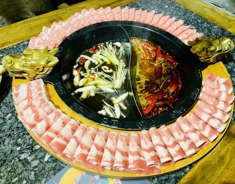中午人不多,一共六七桌吧,门口没有迎宾,全靠自己进去找座。 上菜很快,自助小料也很丰富。 美中不足就是锅底实在太咸了,捞出来就能吃,啥也不用蘸也很咸。 熊猫竹笋也没有可爱的熊猫容器了,变成了一个毫无特...