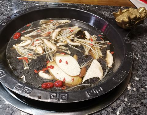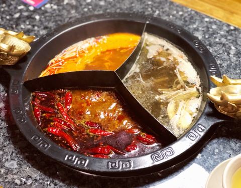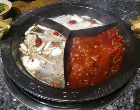 - ...一种的、鸳鸯的还有奔驰锅底,很随心,我选了奔驰锅底,有菌汤、骨汤和红汤三格,每一种口感都很好味