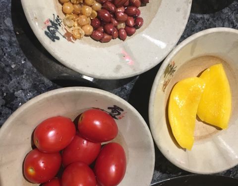点了奔驰锅,选了骨汤,番茄,菌菇三种不辣锅。调料不少,还有4种水果,西瓜最抢手,黄桃也不错。点了贵妃牛肉,大侠毛肚,贡菜丸子推荐菜,很好吃,鲜鸭血,女儿说有咸味,和平时鸭血不同,豆皮等其他菜无功无过。