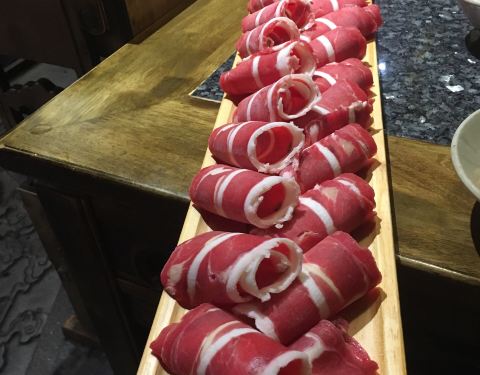 中午人不多,一共六七桌吧,门口没有迎宾,全靠自己进去找座。 上菜很快,自助小料也很丰富。 美中不足就是锅底实在太咸了,捞出来就能吃,啥也不用蘸也很咸。 熊猫竹笋也没有可爱的熊猫容器了,变成了一个毫无特...中午人不多,一共六七桌吧,门口没有迎宾,全靠自己进去找座。 上菜很快,自助小料也很丰富。 美中不足就是锅底实在太咸了,捞出来就能吃,啥也不用蘸也很咸。 熊猫竹笋也没有可爱的熊猫容器了,变成了一个毫无特色到笔筒。 厚百叶和海带芽分量很足。