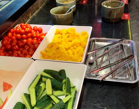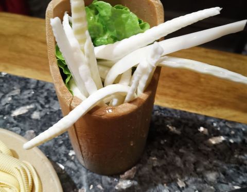 - 熊猫竹笋也没有可爱的熊猫容器了,变成了一个毫无特色到笔筒。 上菜很快,自助小料也很丰富