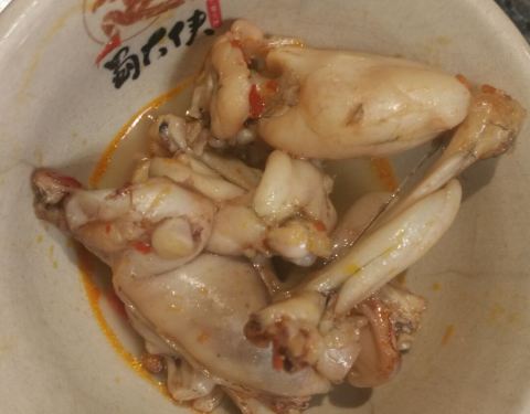 原先的热门店,现在也不用排队了。味道在火锅里算不上好吃的,上菜速度慢,加水也需要叫服务员的,就不能像其他蜀大侠店那样把茶水壶放旁边,顾客自己倒嘛 点了番茄鸳鸯锅,微辣,活杀牛蛙没动,一般活杀的都是动的。一米牛肉很老很老,吃了几片放弃了。熊猫竹笋,熊猫的造型不可爱。炸豆皮,多挺多的,豆皮上有黑点。红糖糍粑,油味太重。调料餐具收费的。