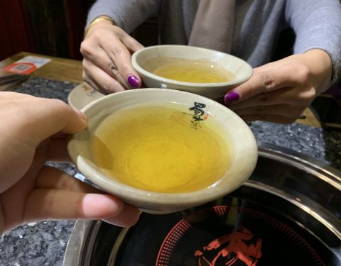 参加活动正好得了了蜀大侠200的美食券,附近有家就去吃了,第一次晚上去的生意太好要等15桌就放弃了,第二天中午去吃的,总算没什么人了,要了个雅座,两人坐正好! 环境装修的一派武侠风,有种人在江湖的感觉!郭靖,洪七公…倒茶的碗也是侠气十足,来,干了这碗!哈哈! 点了个霸王牛羊肉圈128元,看图片以为是和锅底一起的,想不到是分开点的,锅底要了个鸳鸯的,原价68元,加入会员59元,就这一个就要128+59=187,感觉有点贵!霸气是相当足就是性价比差了点!还点了个黄豆皮,加了罐雪碧就两百出头了!有点不够吃呀!