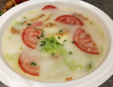 服务很好,环境也很好,东西也很好吃,宫爆明虾球,虾应该是拌了生粉,吃下去的口感滑滑的,番茄鸡蛋汤,一般吃的番茄鸡蛋汤里的鸡蛋都是直接打进去的搅拌成蛋花的,而这里的鸡蛋是煎过之后加进去的,也还不错。