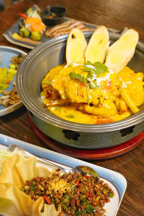 咖喱面包蟹也太棒了,还有一道特色的泰国🇹🇭北部小吃,把各种食材包裹起来,品味人生百态。