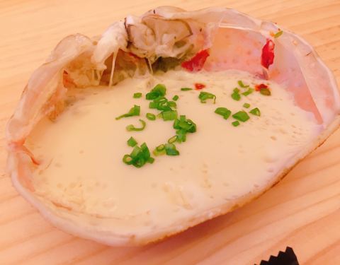 割烹的意思其实是一边切一边烹饪,所以贵在鲜活~ 预约付了500块,只有一楼小包厢,6个人也挤下了~~2楼在装修~ 疫情全球爆发之后,生鱼活片、活牡丹虾都没有空运过来,既然只能吃冰冻的,那就新西兰鳌虾好了,88...