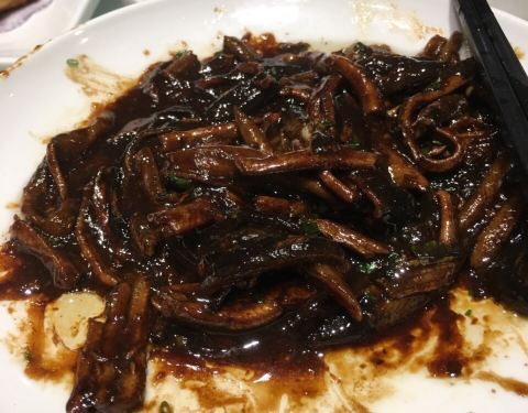 - 他们对红烧肉是赞不绝口,酥糯可口,凉皮用花生酱拌得不错,荠菜山药非常清口,总体不错