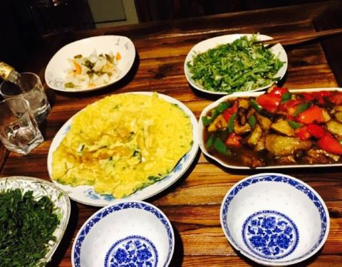 虽长时间生活于城市,但内心深处还是十分向往这种惬意的田园生活。院子很安逸,饭菜虽然是家常菜,但很鲜美