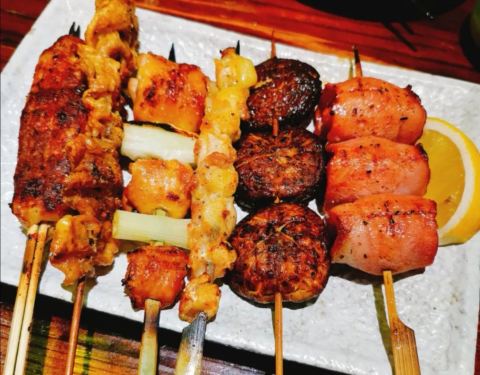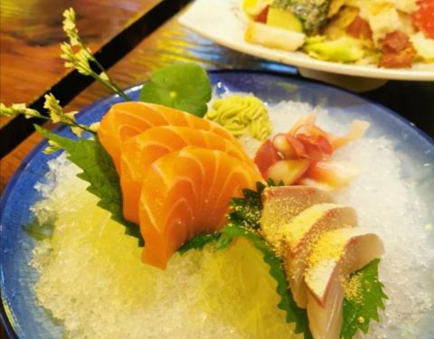 大葱鸡腿肉烤串,日本动漫里那种葱肉相间的烤串,超级无敌的好吃,吃完后又加了一串。 鸡肝,口感很好,很棒。 三色刺身,很新鲜,不过量很少。 生包菜,餐前包菜,很特别,强烈推荐,重来没吃过这么好吃的包菜,...大葱鸡腿肉烤串,日本动漫里那种葱肉相间的烤串,超级无敌的好吃,吃完后又加了一串。 鸡肝,口感很好,很棒。 三色刺身,很新鲜,不过量很少。 生包菜,餐前包菜,很特别,强烈推荐,重来没吃过这么好吃的包菜,酱料也好吃。 海鲜炒饭,料挺足,很多三文鱼和鱿鱼。