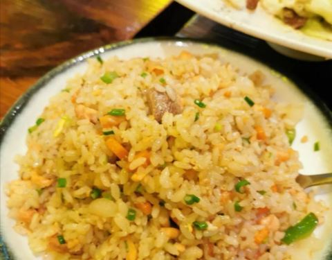 大葱鸡腿肉烤串,日本动漫里那种葱肉相间的烤串,超级无敌的好吃,吃完后又加了一串。 鸡肝,口感很好,很棒。 三色刺身,很新鲜,不过量很少。 生包菜,餐前包菜,很特别,强烈推荐,重来没吃过这么好吃的包菜,酱料也好吃。 海鲜炒饭,料挺足,很多三文鱼和鱿鱼。