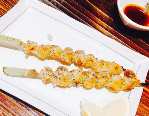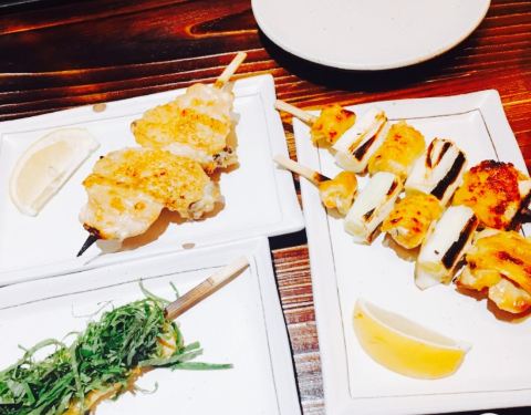 地方其实不难找啦,在天安大厦c栋侧边,一个小小的门。店里环境蛮开心的,比以往去的烧鸟屋要大很多很多,人不是非常多吧。很多日本人。服务生都很热心,一上桌就递上热毛巾喜欢店里的气氛。点完菜就送了很前菜,我很开心,很美味。推荐牛舌,鳕鱼,大葱鸡腿肉,烤元贝我本人吃下来比较喜爱的。牛舌很厚入口很肥美的样子。雪鳕鱼超级嫩超级鲜美。烤元贝很好吃很香。大葱鸡腿要鸡腿肉夹着大葱一起会跟入味。凤尾是鸡pp嘛。我没吃。鸡胗也不错,记得趁热吃。鱿鱼一夜不错,很香,记得撒柠檬汁就着萝卜蓉吃,否则容易腻。刺身我不爱也就没吃,男朋友说很鲜美。芒果炸虾寿司就很一般了。整体下来吃的都感觉不错吧,不过觉得少了点特点,两个人吃了500+。