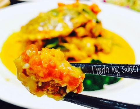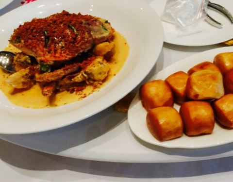 托同事的福,今天去了这家店品尝美食。1⃣️澳门烧肉,确实超级爽口,蘸一下糖料,皮脆的要命,肯定要趁热吃。2⃣️叉烧,我觉得烹饪过程中可能放了酒。3⃣️葱油饼也不错,个头不大,可是很香很脆,吃下去有回弹。4⃣️香辣咖喱蟹,蟹黄特别多,不过我吃不太惯面包蟹的蟹黄。5⃣️??也炸的非常嫩,非常脆。