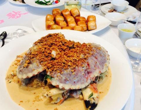 国庆聚餐选了88金庭新开的海立阁,是家立足长宁十多年的老店了。从一家攻略小店发展到有四家店的连锁海鲜酒楼,的确不一般。新店环境不错,宽敞干净,节日期间包房都满了,幸亏提前定了。服务员貌似一间有两个不间断服务,有求必应。菜式虽然不是很多,但还算精致。奶黄面包蟹是招牌菜,特爽口,蟹肥黄多,肉质紧实,味道甜鲜,奶油味浓郁,配上油炸刀切,的确不错,强烈推荐。象拔蚌两吃也不错,就是芥末太冲了,眼泪都辣出来了。家烧虎头鱼配上台州豆腐好吃很鲜。主打是台州海鲜,真的不错,还会光临。价钱也很中等。