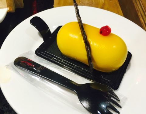 第一次在火锅店能吃慕斯蛋糕,点的芒果慕斯,很有味儿,造型可爱