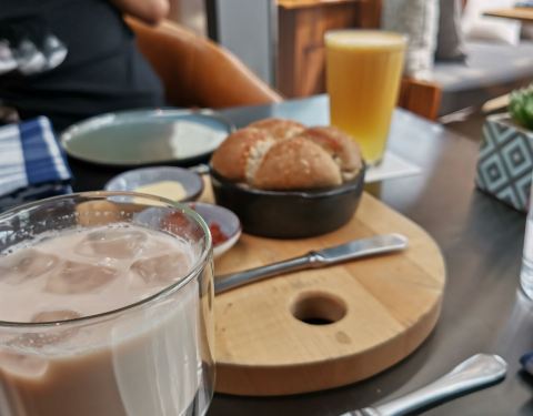 W酒店里面的西餐厅,有室外位置可以坐,可以欣赏酒店的环境和黄浦江美景,当然前提是天气好景色会更好些。不巧来的那天阴雨天,只能欣赏烟雨蒙蒙的景色了,室外有煤气钉可以取暖,也可以让服务生拿毯子来,毯子质感很好很舒服。点了饮品,有送点心,价格很是亲民的,几十块钱可以享受五星级酒店的服务和环境,其实真心划算的哟。