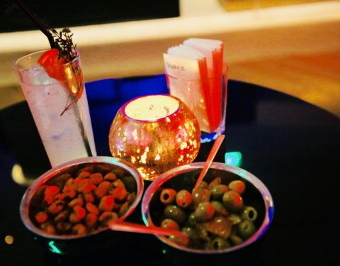 点两杯特调鸡尾酒喝喝,还送了小食,黑橄榄等,酒水颜值还不错!主要是来感受下W的氛围