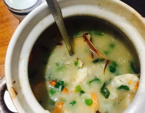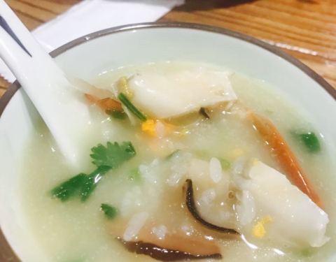 - 最爱的是集色香味于一身的海鲜粥,食材丰富,香醇味美,可惜那一大盆我们没吃完。鱼肉香滑,香嫩入味