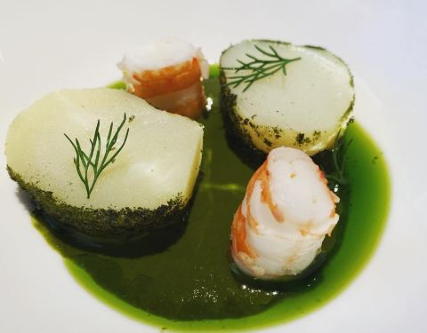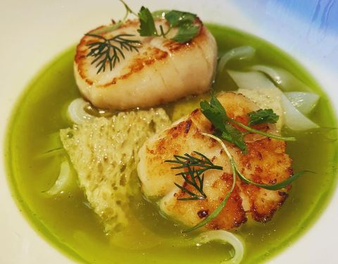 小小的餐厅,服务生都长的很美,菜品质量非常的好,从摆盘到口感到味道。南瓜汤配着水波蛋,外加酥皮,松仁,温暖了今天的下雨天。扇贝口感细腻,配着苹果汁,烘培的也是恰到好处,保存了扇贝的嫩和Q弹。香橙三文...