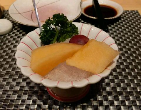 特别是生烤牛肉,肥瘦适中,拌上洋葱入味,入口很鲜美。天妇罗出品不过不失,不过多吃会有点腻