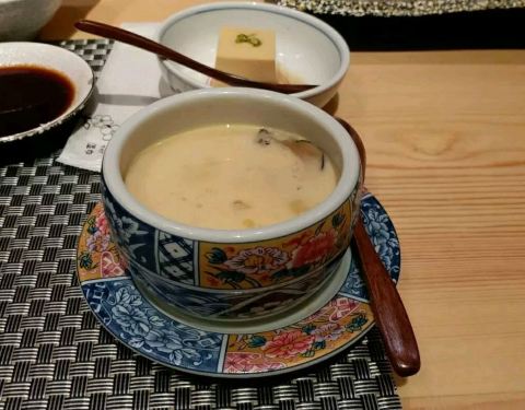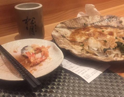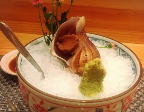 松月自慢料理, 门口的服务员也是挺热情, 周三去, 晚餐不用排位。 直接进去, 需要换鞋光脚进去, 因为一个人,就坐了吧台。 卡座挺多人, 坐卡座可能需要等位了。 整个店铺欢迎词什么都是日语。 吧台里面就是厨师制作的地方, 做好好像就要大喊一声日语, 吓得我整顿饭吃的一颤一颤的。 上菜速度很一般, 等的有点久。 点了一个和风鳗鱼, 中间是萝卜丝, 味道有点咸了, 口感一般。 茶碗蒸很不错, 里面内容充实。 天妇罗大虾, 除了大虾还有一些模糊啊什么的, 酥香可口, 也算是很满意了。 最后又点了一个螺肉。 十八元一个, 但是摆盘和个头都是很不错, 里面的肉感也是紧实, 很喜欢。 价位偏高, 但是这些小小的, 两百块也吃的差不多。 服务员收拾餐桌比较勤快, 过来点餐什么服务态度也OK。 加茶水也是很积极。 订座好像是卡座最低消费是要八百。 左右两边都坐了人。 一个是一个人来吃, 一个是男的陪妹子来吃。 单独吃的大姐就很不满上菜太慢, 最后退了几个菜。 一对男女也是发了脾气, 因为点单点了五次, 结果还是一直有人来问点了什么, 最后男的发了脾气,才点单成功, 然后经理过来送了小菜才算成功。 结果闹得我也没吃好, 感觉服务管理急需提升了。