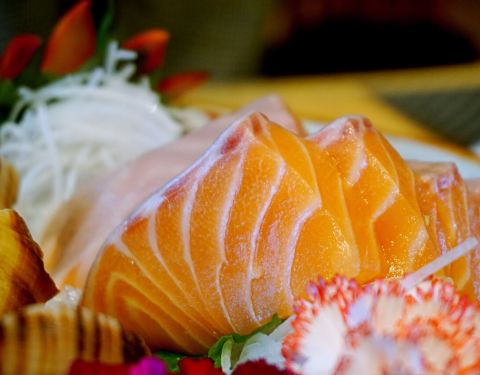 - 三文鱼背厚切,口感丰满、入口即溶,令人意犹未尽。 食材新鲜,摆盘精致