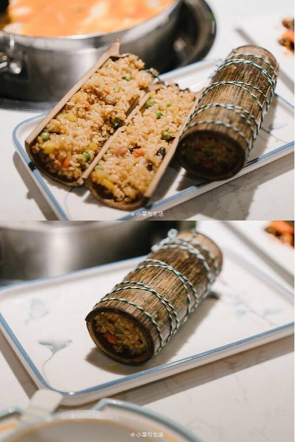 4⃣️特色竹筒饭:非常有特色的一道菜,竹筒的清香和米饭混在一起,吃起来特别美味爽口。