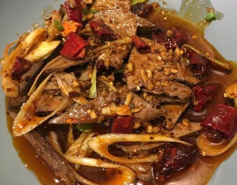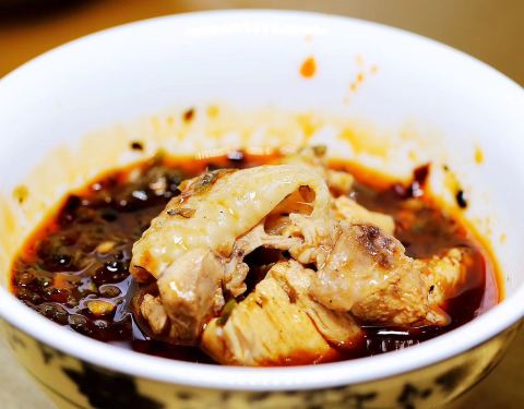 这家汤馆,白果鸡汤从表面一层黄色的鸡油就看得出用心了的,到最后越熬越浓,蘸碟还是烧椒味道,清淡的汤和辛辣的蘸碟很有对比度。很多川式的配菜比较出彩,凉拌白肉、粉蒸肥肠、萝卜牛腩、酸菜炒汤圆,最喜爱小炒鸡,我估计使用的青小米辣,太刺激了。