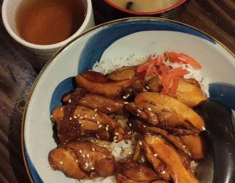 - 照烧鸡肉饭,表层的鸡肉特别多,而且吃起来有一点甜甜的酱料的感觉,也很入味!实力推荐