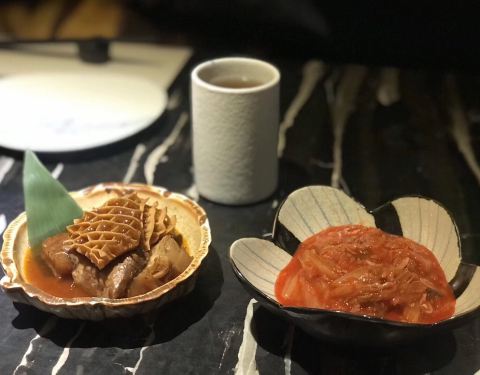 误打误撞去了抖音网红店,排队两小时才吃上 哎,主要是我闹着要吃牛肉寿喜锅……其它还吃了烤青花鱼、炸鸡皮、天妇罗、芥末章鱼、烤牛舌等下酒菜,喝了一小瓶柚子酒 今天学了一道新菜泡菜五花肉,下回打算自己做来吃